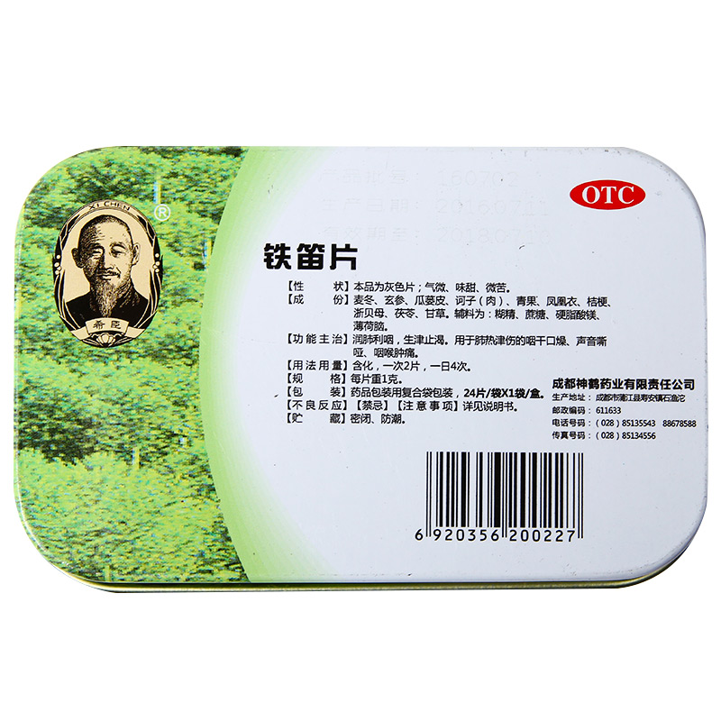 换购:单次满10盒+0.03元换购铁笛片3盒(厂家:成都神鹤药业有限责任公司;规格:1g*24片)