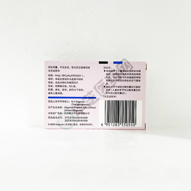 • 生产企业:Organon Pharma (UK) Limited(杭州默沙东制药有限公司分包装)